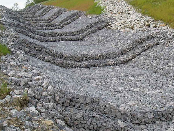 雷诺护垫也叫石笼护垫,格宾护垫,是指由机编双绞合六边形金属网面构成的厚度远小于长度和宽度的垫形工程构件。雷诺护垫中装入块石等填充料后连接成一体,成为主要用于水利堤防、岸坡、海曼等的防冲刷结构,具有柔性、对地基适应性的优点。